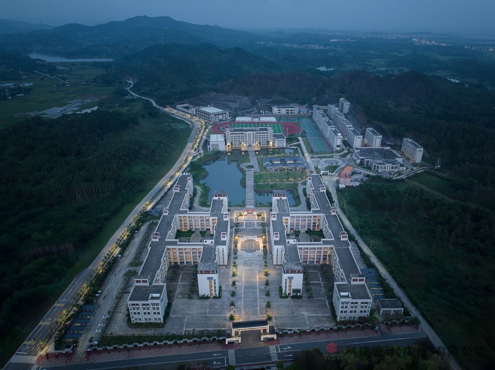 建筑基底面积:37016.1㎡,绿地面积:133688.1㎡。容积率为0.5,建筑密度14.5% ,绿地率52.5%。平均用地面积51.0㎡/人平均校舍面积26.8㎡/人。